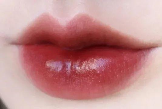 它是一个很清透的红豆奶茶色,水光感十足,上嘴唇部水嘟嘟的又饱满,真不愧叫作湿吻系列,让人忍不住想啵唧一口~