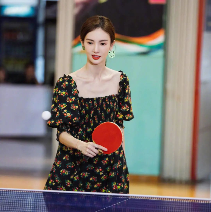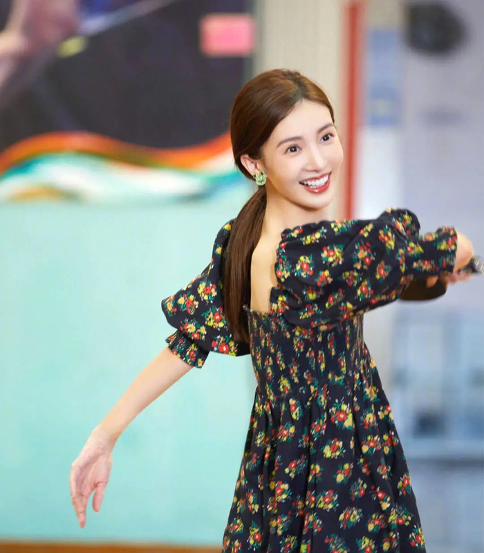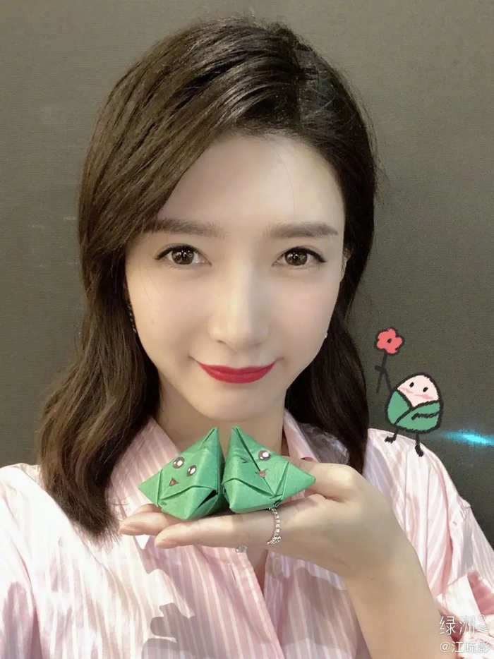 江疏影的剑眉搭配红唇,很好地将妆容的神采表现出来。