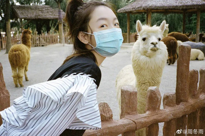 周冬雨小巧玲珑的面庞轮廓,也比较适合自然毛绒感眉妆,搭配浅浅的眼妆,清新自然。