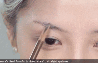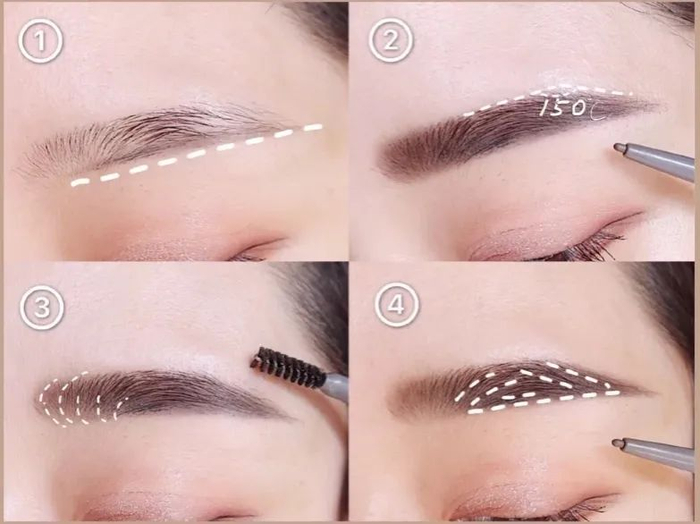 步骤来啦,可以先用眉笔画出下眉线的轮廓,画一条直线框定眉形,把眉峰画出150°角,眉尾上扬,用刷子晕染一下眉头,最后在划线区域加重一些,让眉毛看起来更有深浅对比立体感。