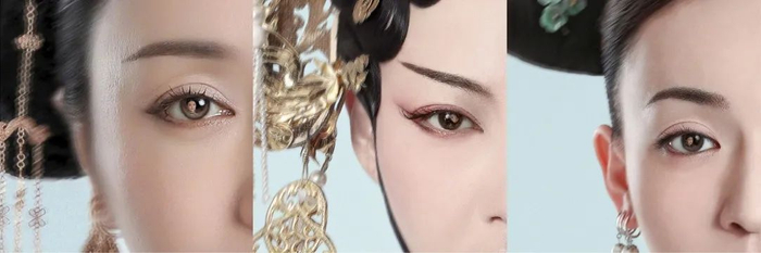 “高贵妃”的眉形“嚣张跋扈”,上挑,更显个性倔强、张扬,眉峰带有棱角,符合人物爱恨分明的性格特点。