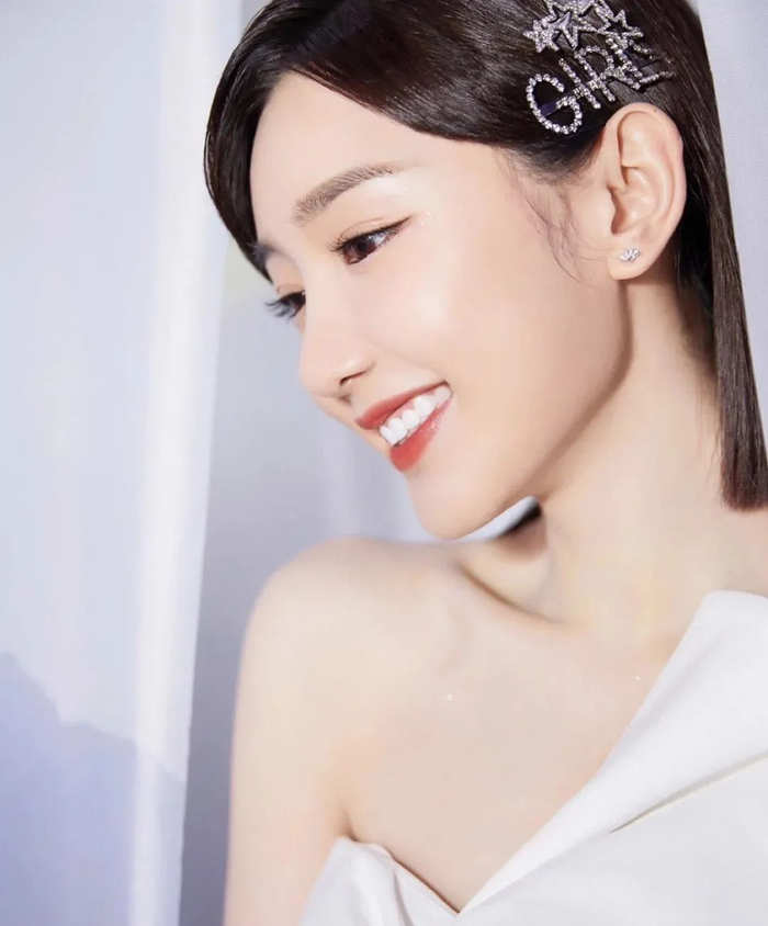 赵露思经常会选择这种眉形,毛绒感带来自然的元气,搭配各种妆容都比较匹配。