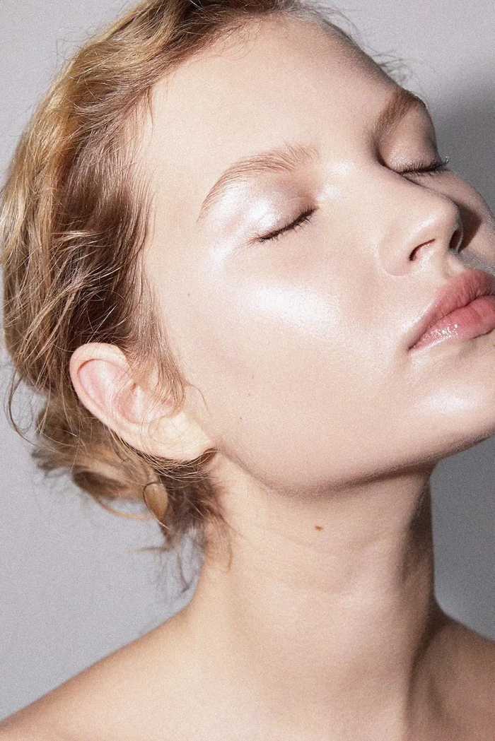 韩式的裸妆则是以“水光感”为主,整个底妆部分很有光泽感,脸部线条圆润,整个人看起来就是那种很鲜嫩的Juicy face。眼线部分则是以内眼线为主,通过略微下垂的眼尾来制造“减龄感”。为了塑造嘭弹饱满的苹果肌,韩式裸妆不是依靠加重侧面的修容来突显两颊,而且是用腮红搭配高光的形式突出面部立体感。