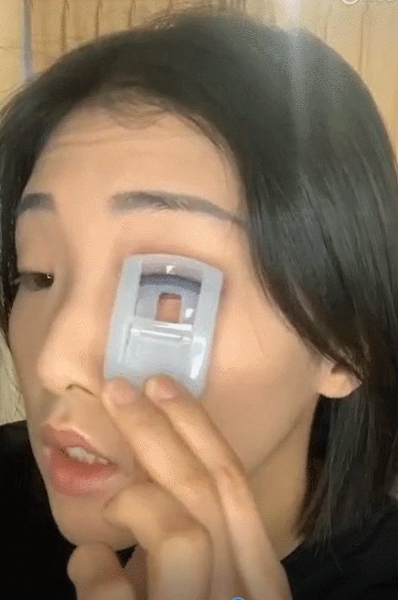 单眼皮眼妆的重头戏——夹睫毛来了!夹住睫毛后倒数五个数,再用睫毛膏Z字型刷睫毛,上下睫毛都要兼顾到~