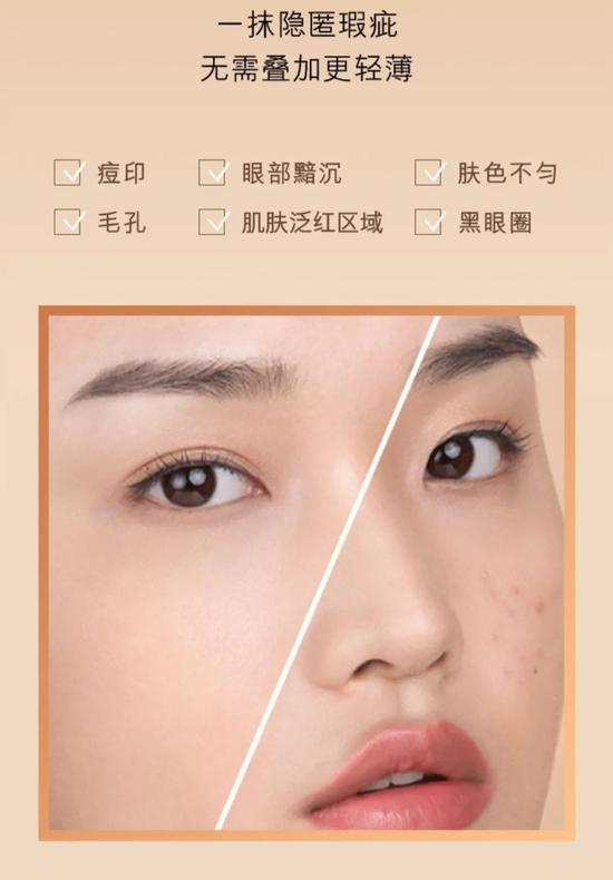 它主打提亮、水润和遮瑕力,白嫩中带着清透的感觉,上妆瞬间打造水润光泽无暇肌!