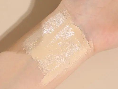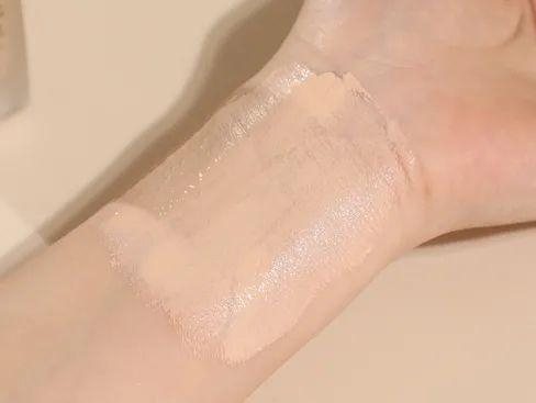 质地比较轻薄,在皮肤上推开的时候有种在涂面霜的感觉,很丝滑~推开后带有微微光泽感,一点都不厚重。