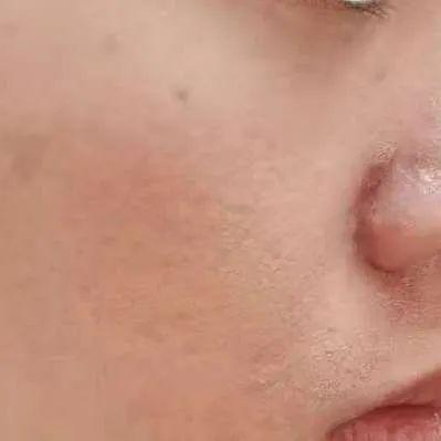 刚上脸的妆效跟皮肤还是比较贴合的,也没什么卡粉的现象。但持妆4、5个小时的时候,休休这个干皮就抗不住了,鼻翼浮粉很严重,看起来有一定的假面感。