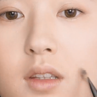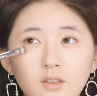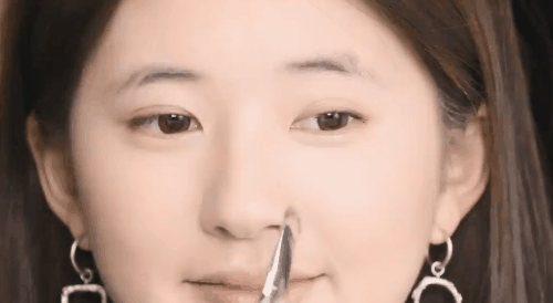 之前我们也说到过,小赵的鼻头比较圆,会中和成熟感。所以毛老师还帮她用偏灰一些的修容适当地收了下鼻头,让五官显得更加精致