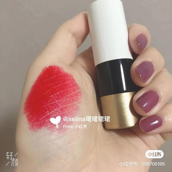 108号色是一个偏橘调的水红色,可以很好地和肤色融合,是素颜涂都会很提气色的那种。
