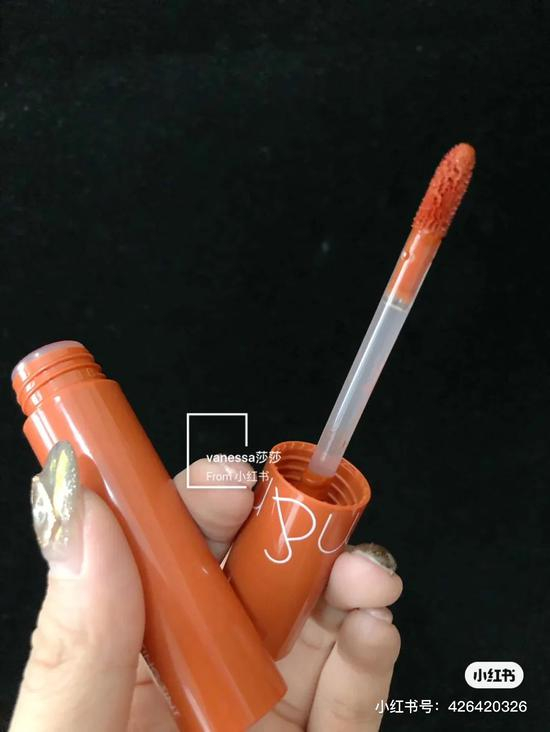 ROMANDE的这支唇釉的调色好特别啊,是很奶里奶气的橘红色,感觉像是一颗多汁可口的大橙子,新鲜到不行。