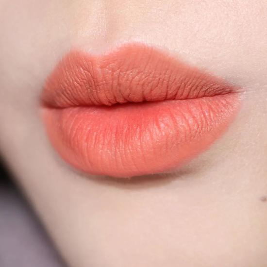 先是它丝绒般的哑光质地,涂抹起来很顺滑。而它的持久度在一众韩妆品牌里也比较低调,不会出现像是做了半永久似的染唇情况。