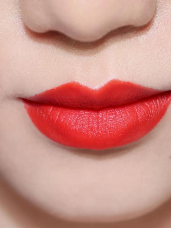 而它经典的番茄色就是第二狠了,红调中带上一点橘色,像是刚刚熟透的小番茄,薄涂的时候元气又日常,厚涂则优雅有气场。在暗淡的秋冬涂就像是一抹艳阳般温暖人心。而且它的显白力也不容小觑,会让整个妆面提升一个档次~