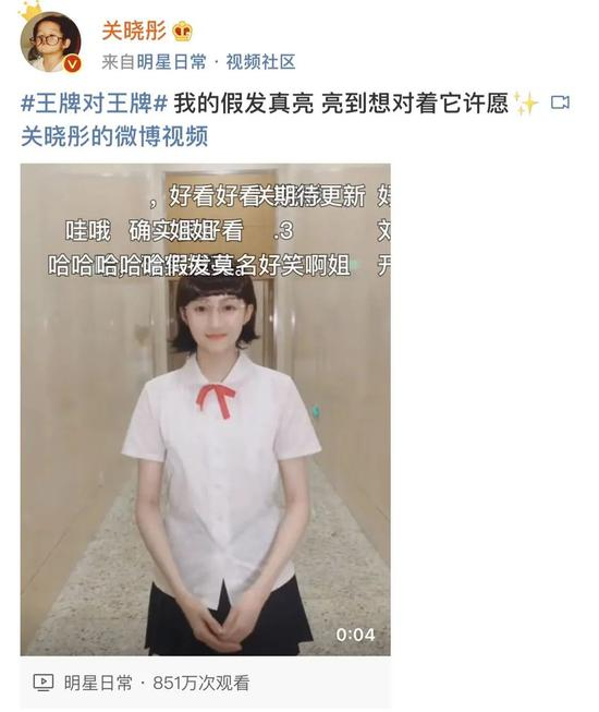 因节目中戴的假发像镜子一样亮到反光,关晓彤随后发微博表示:“我的假发亮到想对着它许愿。”