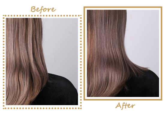 用完之后的效果也可圈可点,从这两张小助理的相机直出对比图就可以看出,用完之后头发柔顺多了(真没加滤镜)。