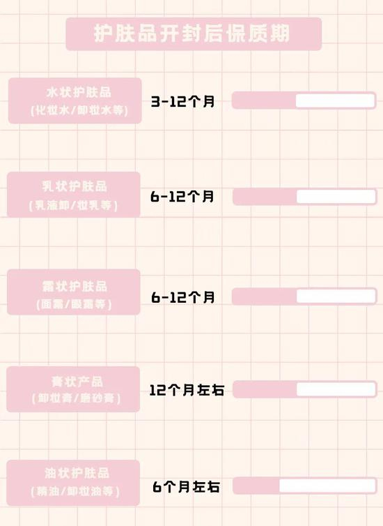 好好好,此时贴心的小助理又再一次上线,给大家整理了一份,常用护肤品/化妆品的开封保质期表,保证姐妹们看得一目了然。