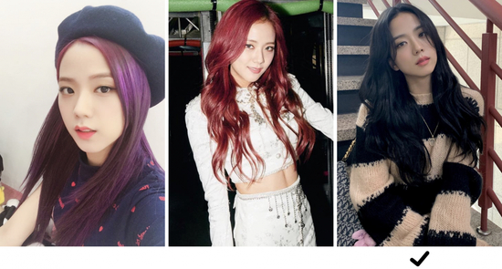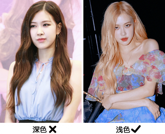 但像Jisoo这样中等量五官的姐妹也要注意,你们更适合黑发,其他发色虽然不太出错,但没有黑发来得舒服和谐。