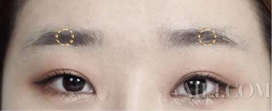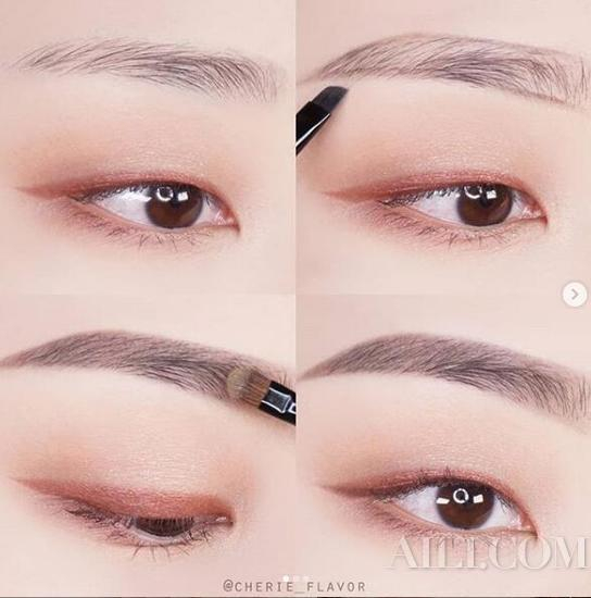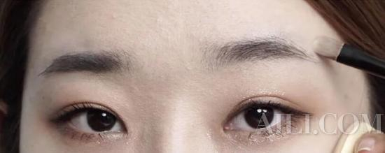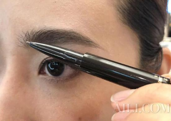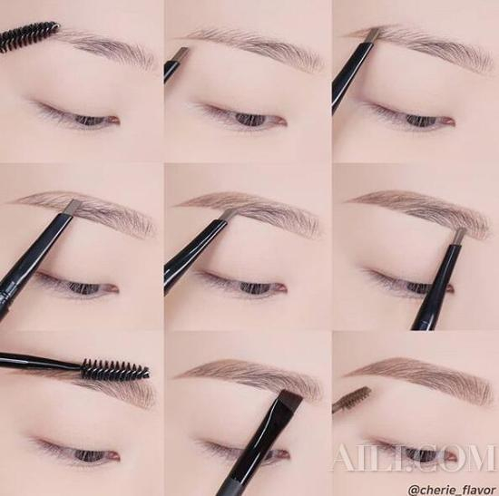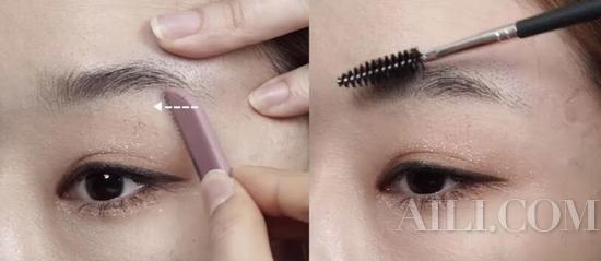 STEP3:最后也是最关键的眉头,用笔头比较细的眉笔。“由下往上”勾勒,这样才能画出自然毛流的眉毛。