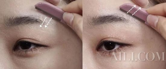 如果担心伤到自己,可以将眼周的皮肤稍微向上提拉,修剪之后会容易很多。眉型修出来之后,记得用眉刷修剪一下毛流,检查一下杂毛是否被清理干净。