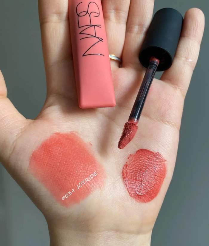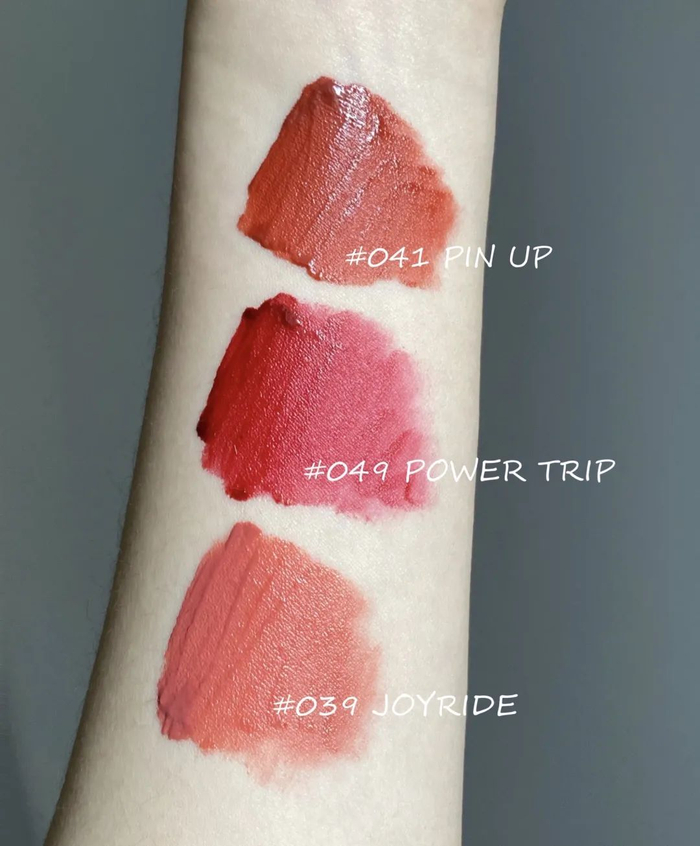 NARS这次新出的空气柔雾唇膏就很适合打造氛围感妆容。这次试的是主推的3支热门色,#041小橘钉 是不挑肤色的橘棕系,黄皮日常也可以驾驭;#049糖霜车厘子 就是浓郁个性的蓝调浆果红,薄涂会显得很文艺。