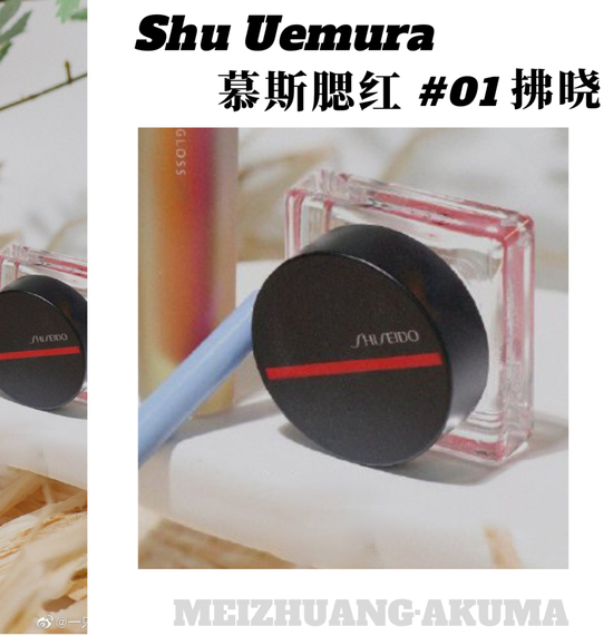 最后的点睛之笔莫过于腮红了,为了强调整个妆容的和谐感,所以选用了粉金闪配置透明感强的腮红,而植村秀的01号拂晓慕斯腮红就这趴的坠强候选人!粉橘调的颜色,既融合了樱花花瓣的粉嫩感,又兼具橘子汽水的元气感,中间夹杂金色的细闪扫上脸,像是被清晨的第一缕拂晓亲吻过一般,散发出难以抵御的温暖光泽感!