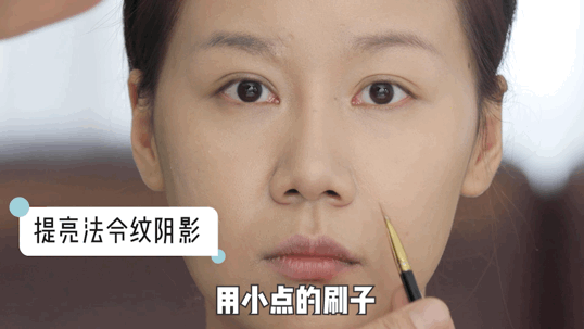 鼻梁高了,鼻翼也不能拖后腿呀!鼻翼两侧的法令纹以及凹陷的鼻基底都是对我们丧失立体感和略显老气的警醒。那我们需要做的就是用遮瑕将存在法令纹的那道沟壑填平,让凹陷处的暗影从视觉上看起来与周围的肤色相近,然后再用遮瑕沿着鼻翼两侧及下方进行提亮,让鼻基底立刻变得饱满起来。