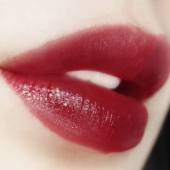 这个色系可以参考香奈儿#117,浓郁的红棕色,带点微妙的金闪,上嘴像洒了金粉的朗姆酒。