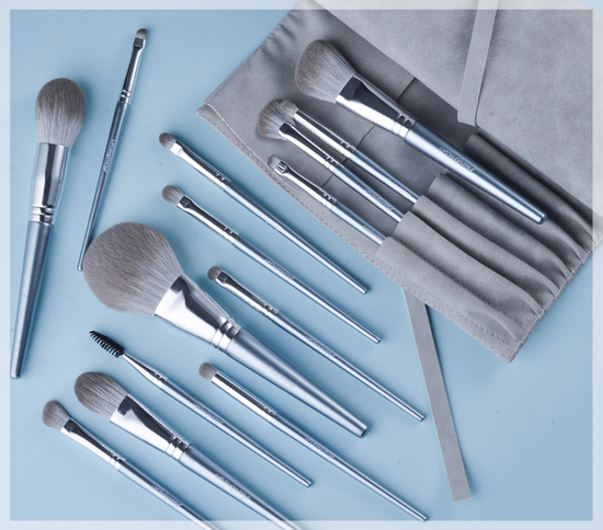 花漾的这套刷子颜值很高,整体是高级的冷色系,搭配冰蓝色珠光烤漆桦木材质,在灯光下还能感受到它微微的细闪~