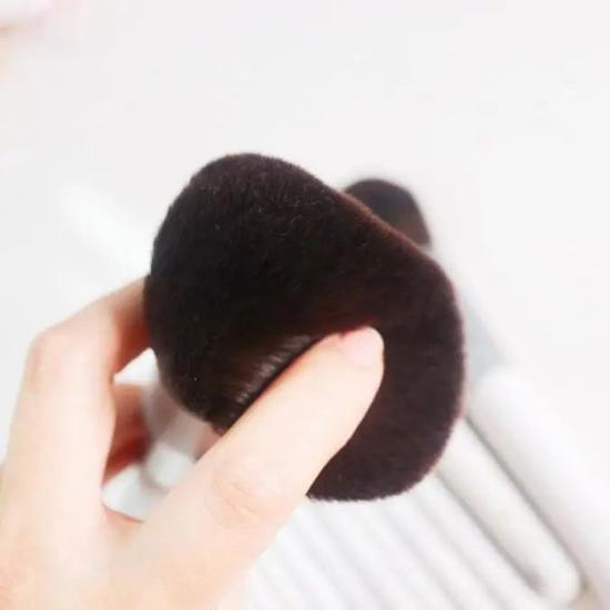 相比粉扑定妆,用散粉刷“扫”出的妆感更加清透自然,而且不容易卡粉。鹿鹿一般采用轻拍定妆的方法,能够感觉到底妆更服帖。通常来说它是一套刷子中毛量最丰富、刷头最大的。