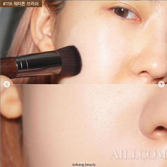 将毛孔和妆前乳混合均匀后,上脸先由内往外,在全脸平铺开。接着用粉扑或者沾湿的海绵蛋轻轻拍开,将粉底压实。更加适合油皮毛孔肌的上妆方式。