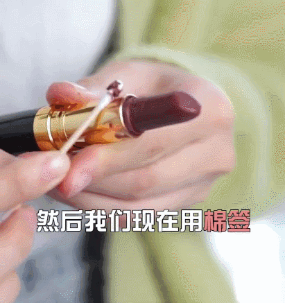 接下来用棉签,把膏体和管身上多余的口红清理干净,保持整洁的外观也是修复的一部分呀。