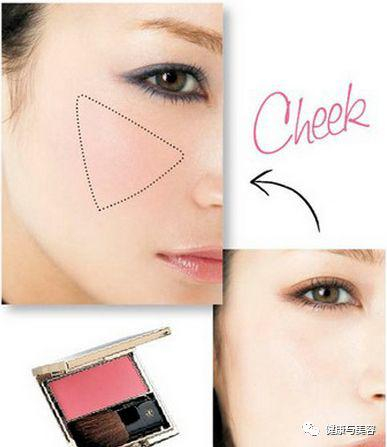 涂抹腮红的位置基本应在笑的时候高起的位置。在运动时泛红的位置涂腮红会更显自然。