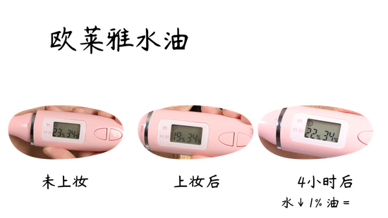 本次评测主要看的是妆前和妆后4个小时的水油对比,只要水份值真的没有低到很夸张,都算是能接受的啦!