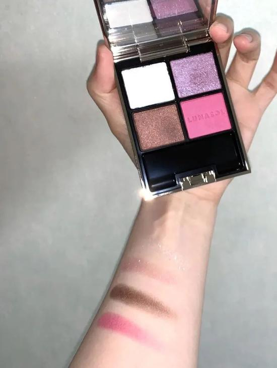 接下来出场的是来自嘉娜宝旗下的日系高端彩妆品牌LUNASOL~03色号是饱和度较高的粉紫色调,小可爱们先别被它的配色吓退,其实它上眼很清透,非常适合橄榄皮~