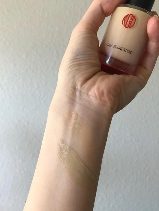 质地很水润,上脸后很服帖,即使是涂了很多层也不会有厚重感~呈现出带有光泽的奶油肌妆效,近看皮肤像是在发光,真是爱了~而且AKUMA用它都不会有暗沉,妆效坚持的杠杠的!