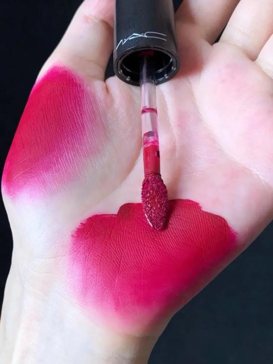 丝绒质感的哑光质地,上嘴后触感超好。不仅成膜的速度快,还不会显唇纹,嘴唇雾蒙蒙的超好看~持久度也很强大,就是会有点染唇,需要多卸几次~