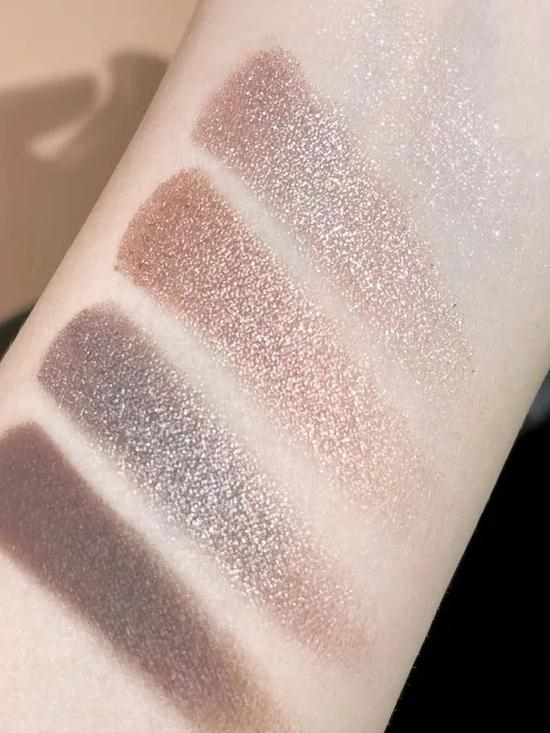 加了灰调的粉紫色系很显温柔,低饱和度也很适合橄榄皮小可爱~尤其要夸夸它的亮片色,超级清透,画出的眼妆仙气满满~质地也很细腻,不会出现飞粉的情况,真的超赞!
