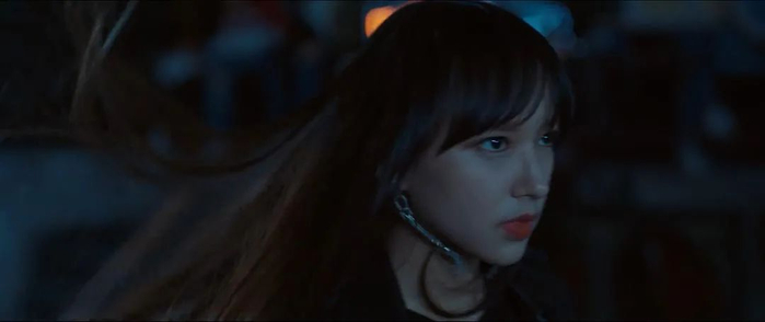 剧里她就是梳着特别少女的双马尾,顶着一张人畜无害的萝莉脸,但眼神却是冷冰冰的。