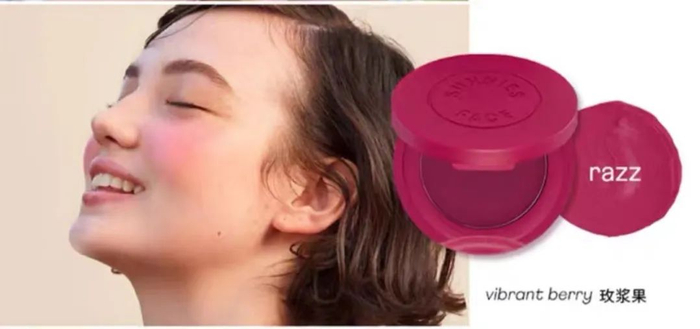看起来浓郁的火龙果色但实际上脸更像是皮肤透出的红晕感,且不挑皮。可大面积使用,然后定妆前再用美妆蛋上面的余粉盖一下,这样效果更通透自然。