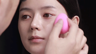 再用美妆蛋轻拍,使隔离霜与肌肤更加贴合。