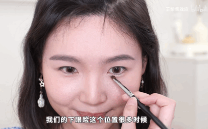 最后用珠光的高光,或者是米白色的高光涂在眼球下方,让卧蚕更膨一点,有自然鼓起来的效果。