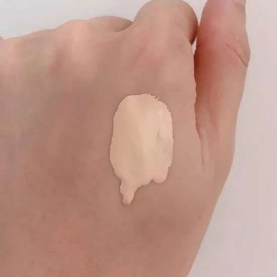在这里我们同样选用半干半湿的美妆蛋上妆,先将粉底液挤到手背上,用美妆蛋蘸取适量在手背上拍开再上脸,整张脸的上妆厚度要均匀。可以带一点粉底到脖子上,防止色差太大造成的假面感哦~