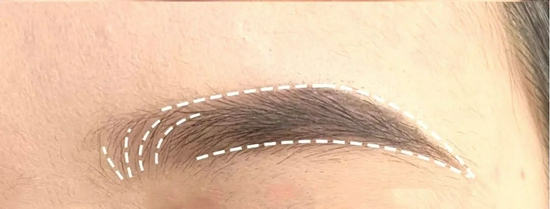 在这里,大家得先找到自己的眉头(鼻翼与眼头连线的延长线上)、眉峰(鼻翼与黑眼球外边缘连线的延长线上)、眉尾(鼻翼与眼尾连线的延长线上),并且记住酱酱的小口诀:“先平后仰最后下,前轻后重尾巴尖”,多加练习,手感会慢慢来的~