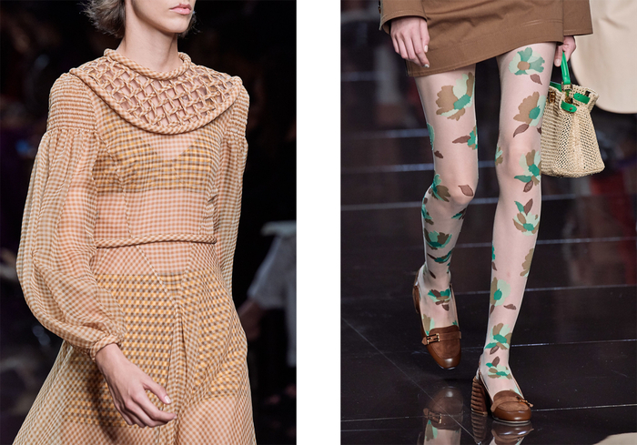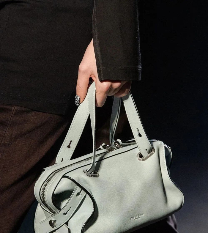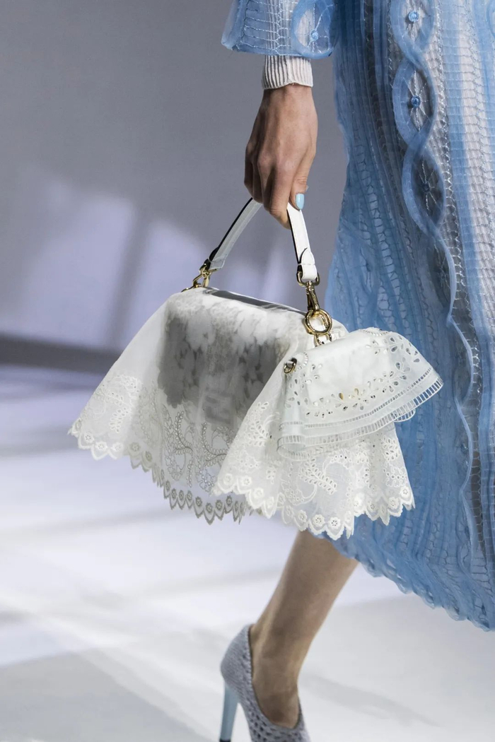 TomFord的lookbook中,模特手上的粉色光泽更像是一种清凉的泡泡糖粉色,它为轻松的服装增添了一种俏皮的氛围。Fendi也展现出击中不同的粉色,他们选择的粉色也倾向于甜美明亮,相比于Badgley Mischka那种柔软的粉红色。