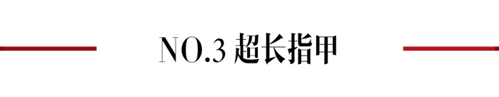 长而尖的指甲,像钉子一样,与秀场中的其他指甲形成了鲜明的对比,这些指甲引人注目,危险,具有幻想性,似乎提供了一个很好的场所,供人逃避现实。