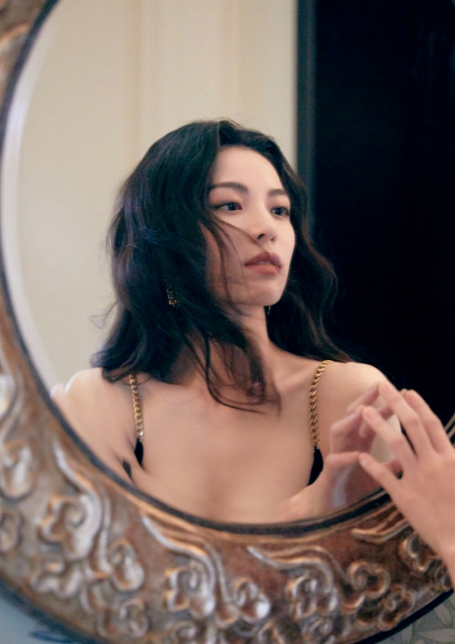 在她的日常照中,对镜拍是最常见的自拍形式,当然也是最容易模仿的小技巧之一。