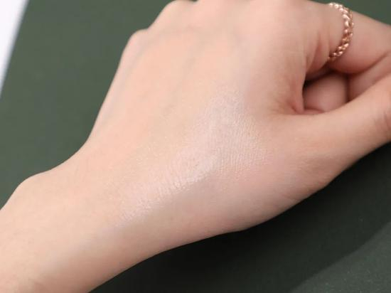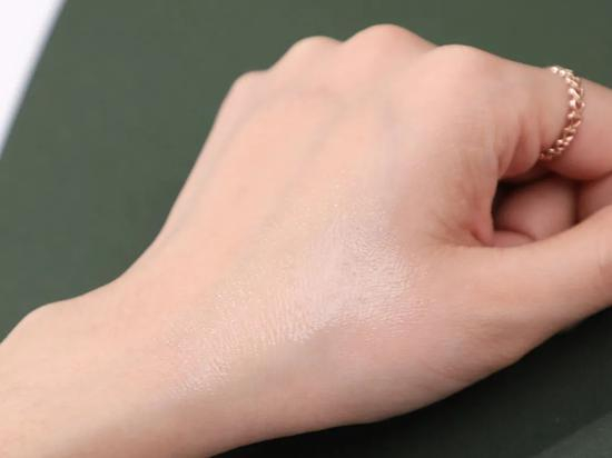 它的质地介于水和乳之间,有点像加水稀释之后的粉底液。虽然是滋润款但也不算厚重,轻轻一抹就能推开。