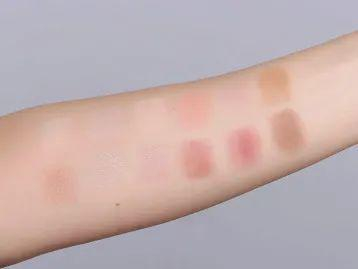 它一共有五个哑光色、四个珠光色和三个偏光色,上面一排走的日常路线,比如用哑光浅色就很温柔。