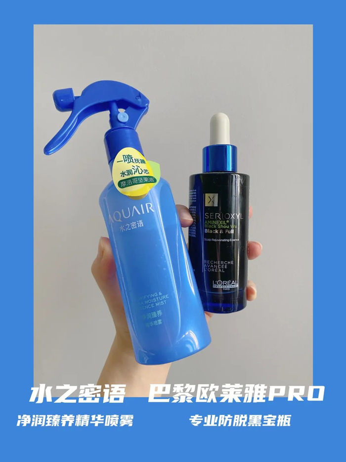 欧莱雅黑宝瓶是我用过挺多防脱产品里,能让我明显感觉到发际线和额角的小碎发绒毛多起来的一个。里面是有经典的何首乌等生发固发的中草药提取,打开也是一股草本味儿,我自己还挺喜欢的。洗完头擦干之后,滴几滴抹在发际线和发缝等地方的发根处,指肚按摩几下就可以啦,不用洗掉,干了也不会糊在头发上。