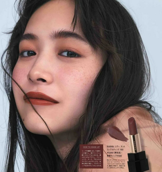 南瓜色口红的天花板。介于奶茶色和土橘色之间,既不会没气色又不用担心黄皮显黑。搭配丝绒哑光的质地,给人一种温柔又优雅的气质。