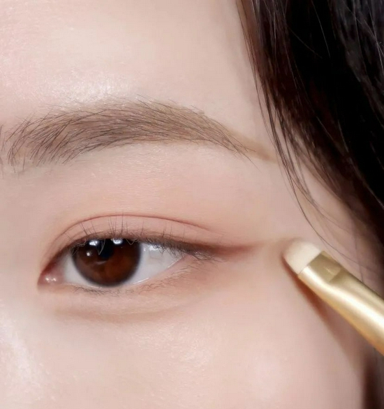 把眼影放在眼皮上,这还不算完!记得加一步:把每一层眼影的边界晕染干净、自然,直到让颜色与颜色之间没有明显边界再结束,进行下一步。
